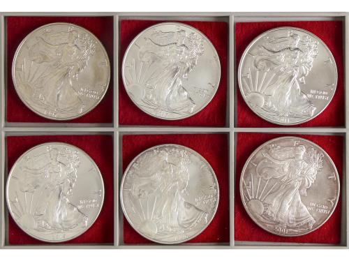 ESTADOS UNIDOS. Lote 16 monedas 1 Dollar. 1995 a 2017. Walking liberty. A EXAMINAR. KM-273. SC.