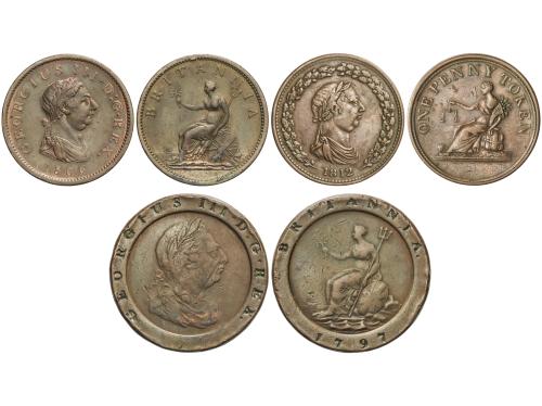 GRAN BRETAÑA. Lote 3 monedas Cobre. 1797 a 1812. 1 Penny 1806 KM-663; 2 Pence 1797 KM-619; One Penny Token 1812 lower Canada (ESCASO). A EXAMINAR. MBC- a EBC-.