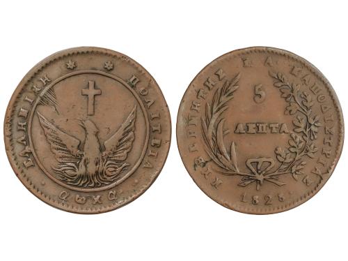 GRECIA. 5 Lepta. 1828. JOHN CAPODISTRIAS. 8,09 grs. ESCASA. KM-2. MBC-.