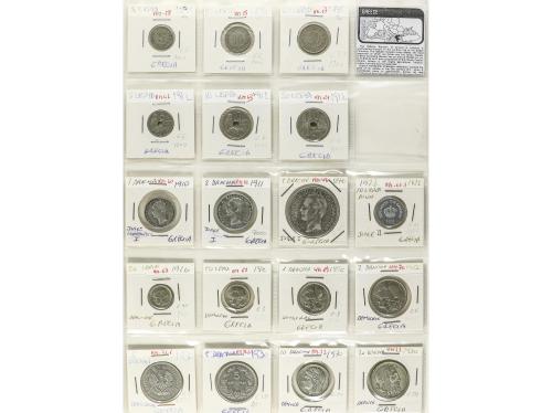 GRECIA. Lote 105 monedas. Siglo XIX-XX. Diferentes valores, incluye moneda circulante y conmemorativa. En hojas de álbum. A EXAMINAR. BC+ a SC.