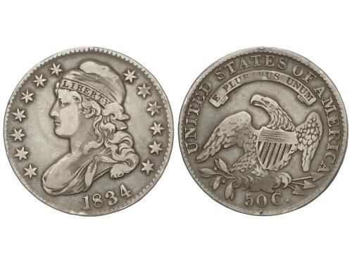 ESTADOS UNIDOS. 1/2 Dollar. 1834. 13,28 grs. Capped Bust. Pátina . KM-37. MBC-/MBC.