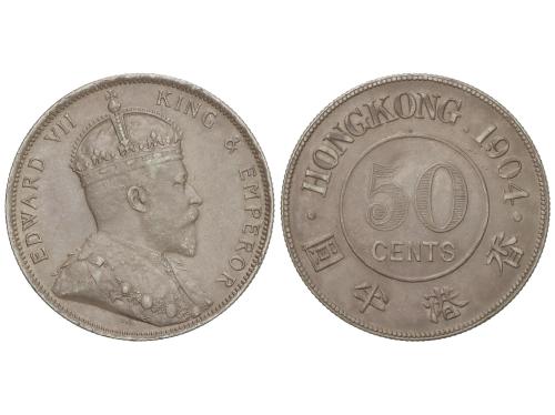 HONG KONG. 50 Cents. 1904. EDWARD VII. 13,50 grs. (Golpecito en reverso). Pátina. KM-15. MBC+.
