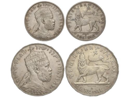 ETIOPÍA. Lote 2 monedas 1/2 y 1 Birr. EE1889-A. MENELIK II. PARÍS. 13,83 y27,89 grs. KM-4/5. MBC-y MBC.