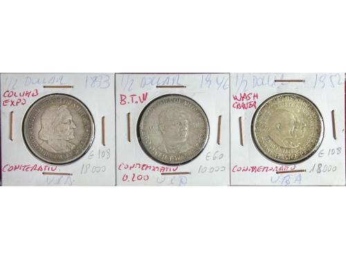 ESTADOS UNIDOS. Lote 3 monedas 1/2 Dollar. 1893. 1946 y 1952. Conmemorativas. Expo Chicago, Booker T. Washington y Carver-Washington. KM-117, 198 y 200. MBC a EBC.