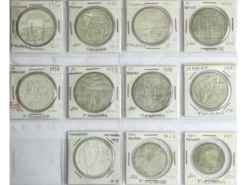 FINLANDIA. Lote 11 monedas 10 a 1.000 Markkaa. 1952 a 1997. La mayoría tamaño duro. A EXAMINAR. KM-35, 43, 50/52, 54/56, 58, 60 y 84. EBC a SC.