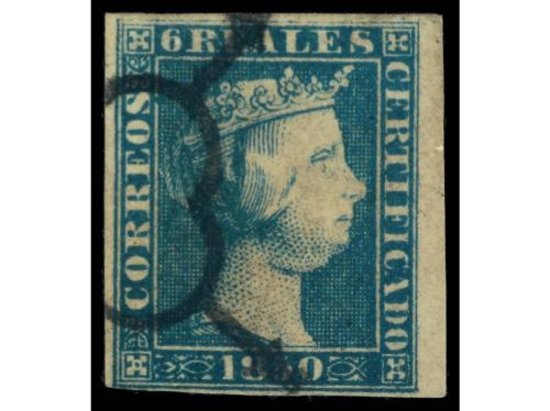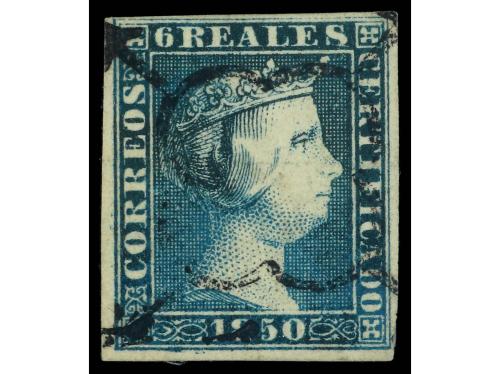 ° ESPAÑA. Ed. 4. 6 reales azul. Cert. CEM. PRECIOSO. MUY RARO. Cat. 1.140€.