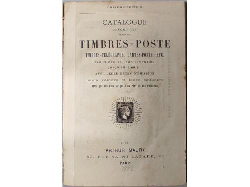 ESPAÑA. CATALOGUE DESCRIPTIF DE TOUS LES TIMBRES-POSTE, TIMBRES-TELEGRAPHE, CARTES-POSTE, etc... , PARUS DEPUIS LEUR INVENTION JUSQU'EN 1881 (1882) de A. Maury.