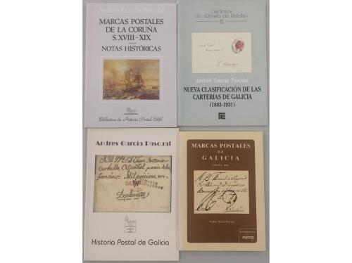 ESPAÑA. MARCAS POSTALES DE LA CORUÑA, S. XVIII-XX (1992), HISTORIA POSTAL DE GALICIA (2001) y NUEVA CLASIFICACION DE LAS CARTERIAS DE GALICIA (1883-1931) de Andrés García Pascual.